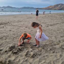 Am späten Nachmittag laufen wir in Samara am Strand entlang. Hier wimmelt es nur so von Familien mit Kindern und Junggebliebenen, die Surfen, feiern oder einfach entspannt "einen durch ziehen". Wir suchen uns eine schöne Beachbar am Strand und genießen die Happy Hour: Tequila Sunrise zum Sonnenuntergang, während die Kinder auf dem Fussballfeld umher rennen und neue Kontakte knüpfen. Wir bleiben bis es dunkel wird und bringen dann unsere völlig erledigten Zwerge ins Bett.