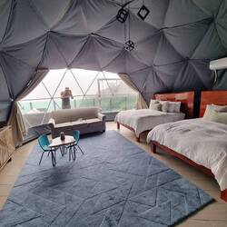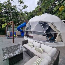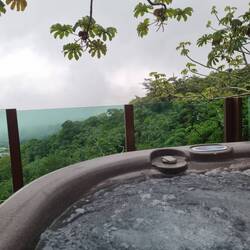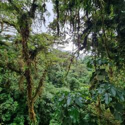 Wir fahren also nach Monteverde. Der Weg dorthin ist vor allem gegen Ende recht abenteuerlich, denn die Straße ist schmal und mit großen Schlaglöchern versehen. Gegen 16:30 Uhr kommen wir an unserer Unterkunft an und hier ist es deutlich kühler als am Meer (~23 Grad am Abend) . Wir schlafen heute in einem Luxuszelt mit eigenem Jacuzzi. Uns verschlägt es die Sprache beim Anblick unseres unglaublich schönen "Zimmers". Wir blicken direkt auf den mystisch aussehenden Nebelwald. Wir packen aus, springen in den warmen Jacuzzi und bestellen uns Essen von einem der Restaurants aus dem Ort. Im Anschluss machen wir es uns in unserem Zelt mit Netflix gemütlich und lassen den Abend so entspannt und huschelig ausklingen.Read more