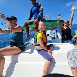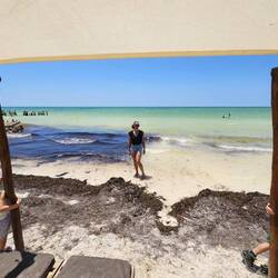 Wir fahren eine Stunde zur Isla Mujeres und können dort das Gesehene verarbeiten, baden und relaxen. Es gibt ein leckeres Mittagessen auf dem Boot und dann geht es auch schon zurück zum Festland und zum Apartment.