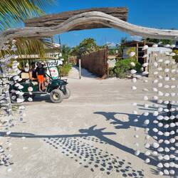Heute fahren wir also ganz in den Norden Yucatans auf die Isla Holbox. Wir parken unser Auto in Chiquilá und setzen mit dem Expressboot über. Holbox ist eine autofreie Insel und man bewegt sich hauptsächlich mittels Golfcarts vorwärts. Vor 4 Tagen hat es hier stark geregnet und überall sind riesige Pfützen bzw. kleine Seen auf den Straßen. Wir nehmen ein Carttaxi zu unserer Unterkunft und gehen etwas essen. Das Meer ist türkisblau und die Atmosphäre entspannt. Wir fühlen uns endlich wieder wohl und können aufatmen. Wir leihen uns ein Golfcart und erkunden selber ein wenig die Gegend. Holbox ist aufregend, bunt und gleichzeitig entspannt und damit ein toller Ort zum abschalten. Die Kinder toben sich an einem Spielplatz aus und genießen es, mal Zeit "für sich" zu haben. Später fahren wir zum Hotel zurück und entspannen im Pool zum Sonnenuntergang. Wir warten bis es dunkel ist, denn wir haben noch etwas Besonderes vor. Von Juni bis September gibt es auf Holbox ein sehr seltenes Phänomen: die Bioluminescence. Hierbei strahlen Kleinstlebewesen im Meer bei Berührung Lichtsignale aus. Die Organismen erstrahlen zum Selbstschutz um Fische und andere Raubtiere zu irritieren und fern zu halten. Wir wollen also zum Playa de Coco, einem Strand an dem man dieses Phänomen besonders gut beobachten kann. Das sollte ein Abenteuer werden... Und was für eins! Wir machen uns zu Fuß zum Strand auf. Wir werden vor mehrere Probleme gestellt: 1. Mosquitos! Tausende, abertausende Plagegeister umkreisen uns trotz Mückenspray mit DEET 50! Und stürzen sich erbarmungslos auf jedes Stückchen ungeschützte Haut.