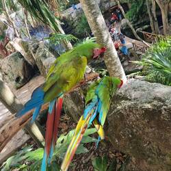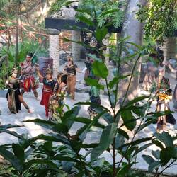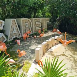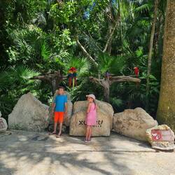 An unserem letzten Tag in Mexiko fuhren wir in einen großen Freizeitpark: Xcaret. In dem Park gibt es Unmengen zu entdecken und wir verbringen den kompletten Tag dort. Wir sehen freilebende Totenkopfäffchen, die sich von Baum zu Baum schwingen und ganze Horden von süßen Nasenbären mit Babies. Außerdem gibt es (eingesperrt allerdings) Delfine, Seekühe, Schildkröten, ein Tapir, Jaguar, allerlei Vögel und Flamingos. Es gibt überall Buchten zum Schnorcheln und baden und auch teilweise unterirdisch fließende Flüsse, durch die man schwimmen kann. Wir schwimmen durch einen dieser 600 m langen Tunnel. Über uns hängen Fledermäuse, um uns krabbeln Krabben und zum Schluss schwimmen wir durch Mangroven. Für die Kinder gibt es Wasserrutschen und einen Abenteuerpfad. Am Ende laufen wir über 7 Stunden umher und haben noch längst nicht Alles gesehen. Zum Abschluss gibt es noch eine große Show, in der die Geschichte Mexikos beginnend vom Leben der Maya bis zur heutigen Kultur dargestellt wird. Diese ist sehr schön und die Kinder sind fasziniert. Am späten Abend sind wir völlig K.O. zurück am Hotel und packen unsere Sachen, denn schon morgen soll es wieder heim gehen :(.
