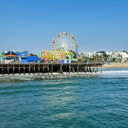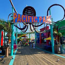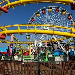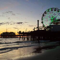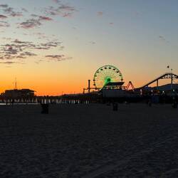 Und auf einmal stehe ich vor dem Santa Monica Pier in Los Angeles, der mich mit dem schönsten Sonnenuntergang begrüßt. Noch nicht wirklich realisierbar und komplett verrückt.