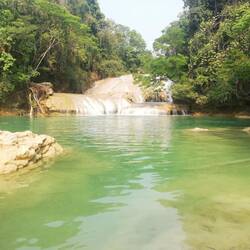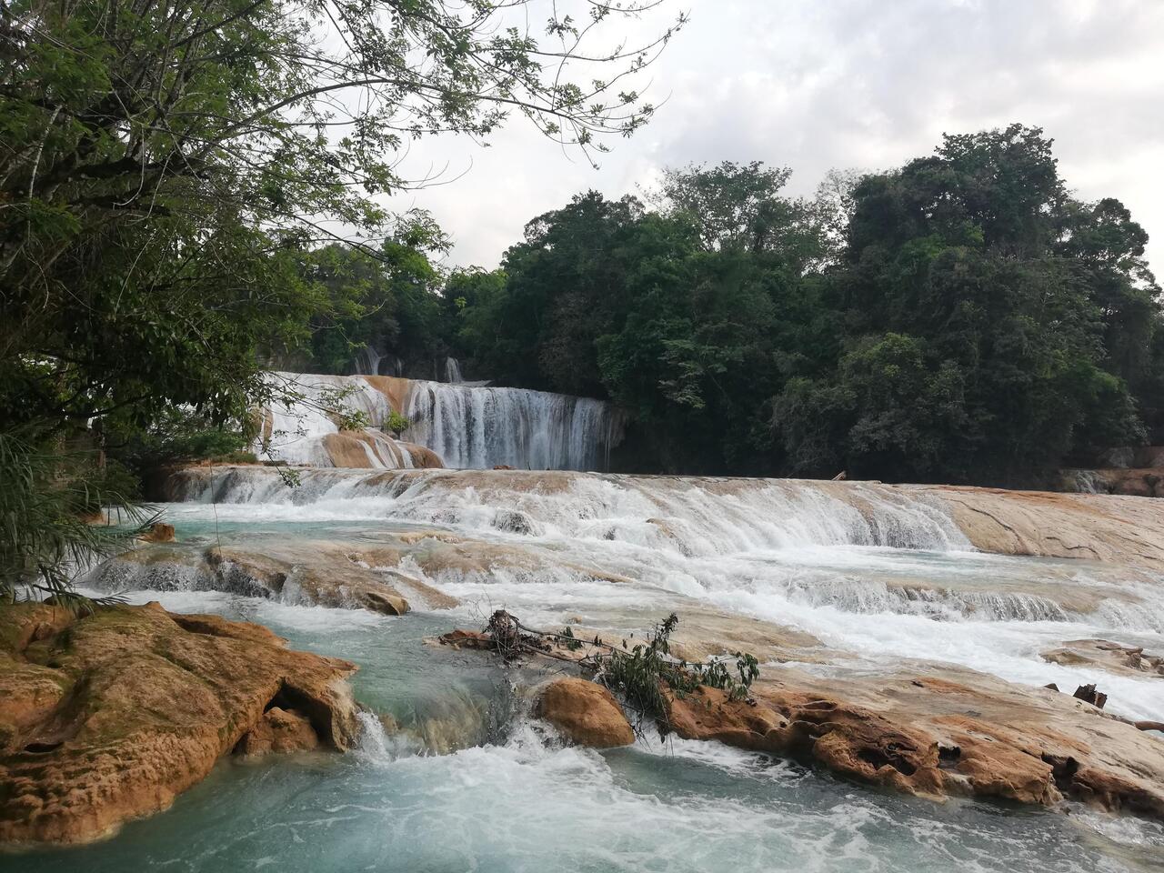 Wir bleiben noch eine Nacht in Palenque, buchen aber ein neues Hotel. Gestern haben wir bereits die Ruinen und die Cascadas besichtigt, darum haben wir in ein Hotel mit Pool und Restaurant gewechseltMeer informatie