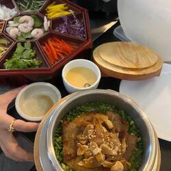 Food was so good! Mala oat milk soup, the roasted delights, baked potatoes 🤤