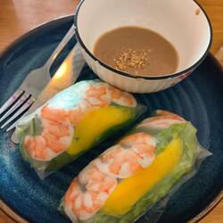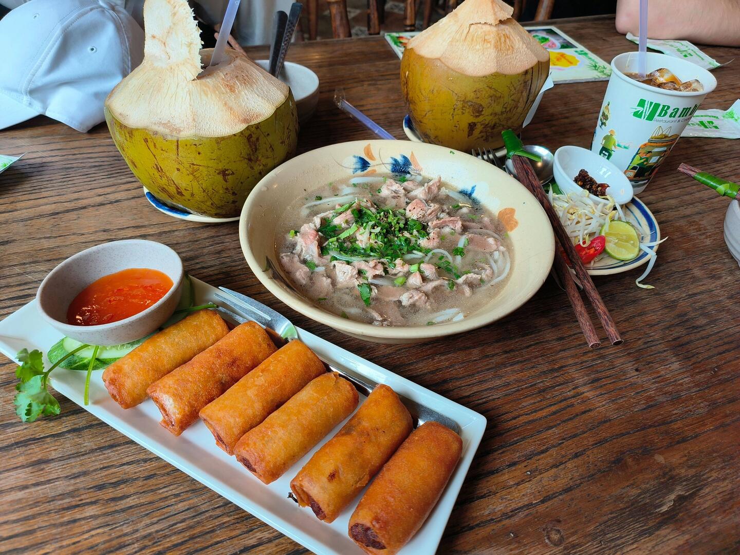The pho was really good that we had to order another bowl to share 🤭 really enjoyed the spring rolls too, especially since never really had those with meat