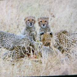Heute Morgen sind wir scho früh los. Nach kurzer Fahrt haben wir zwei Löwinnen🦁 mit ihren 4 Jungtieren beim Frühstück entdeckt. ➡️ Minus Ein Gnu....
