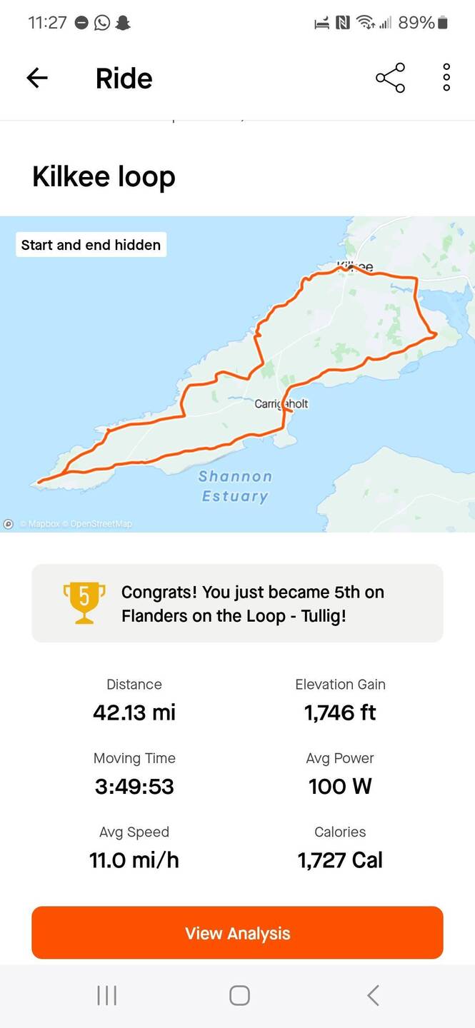 Beautiful ride along the coast, 42 miles. A bit of a cross wind the last 10 miles.