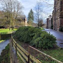 Bei bedecktem Wetter machen wir einen Spaziergang durch den Ort und den Kurpark.