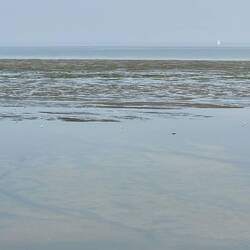 Wir stoppen noch am Lauwersmeerdijk und werfen einen Blick aufs Wattenmeer. Allerdings ist die Sicht in die Ferne heute recht trüb. Das und die pralle Sonne vertreiben uns bald wieder vom Deich. AmBaca lagi