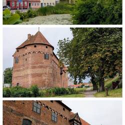 Wir wechseln auf die Landstraßen, die nun hauptsächlich von landwirtschaftlichen Flächen gesäumt sind. Es hat letzte Nacht schon angefangen zu regnen und auch während der Fahrt folgt eine Schauer der anderen. Die Wettervorhersage behauptet, an unserem Ziel - Sonderburg - sei es trocken. Und tatsächlich, ungefähr zehn Kilometer vor der Stadt, ist das auch so.