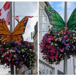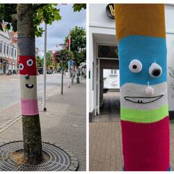 Am Schloss findet ein Ritterfest statt. Daher ersparen wir uns diesen Bereich und schlendern durch die Innenstadt mit ihrem teilweise noch alten Baubestand. Alles ist sehr hübsch geschmückt. Viele Pflanzen gibt es und den Bäumen am Straßenrand hat man ein Leibchen gestrickt.