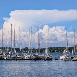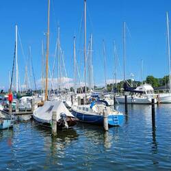 Wir verabschieden uns von der Ostsee und beginnen mit der Heimreise. Allerdings wollen wir uns Eckernförde noch ansehen, da waren wir noch nicht. Die Stadt besteht aber ausschließlich aus Baustellen, Menschenmassen und alle Parkplätze sind besetzt.