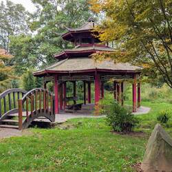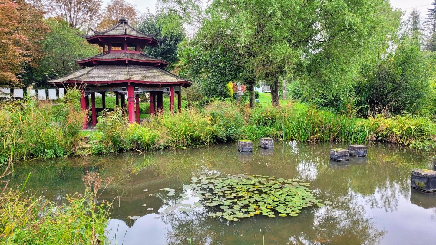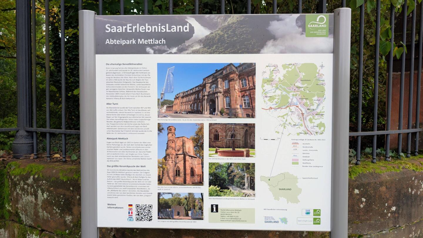 Nach wenigen Kilometern erreichen wir Mettlach. Dort wollen wir heute Villeroy & Boch besuchen. Aber zuerst schlendern wir durch den Abteipark, denn es regnet jetzt noch nicht.