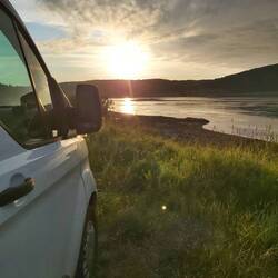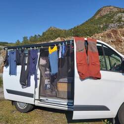 Heute viel gefahren, die ersten 3000 km sind geschafft! Rentier on the Road! Und jetzt noch einen super coolen Stellplatz gefunden! Gebadet im Fluss und gleich auch die Wäsche gewaschen 🥶