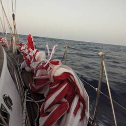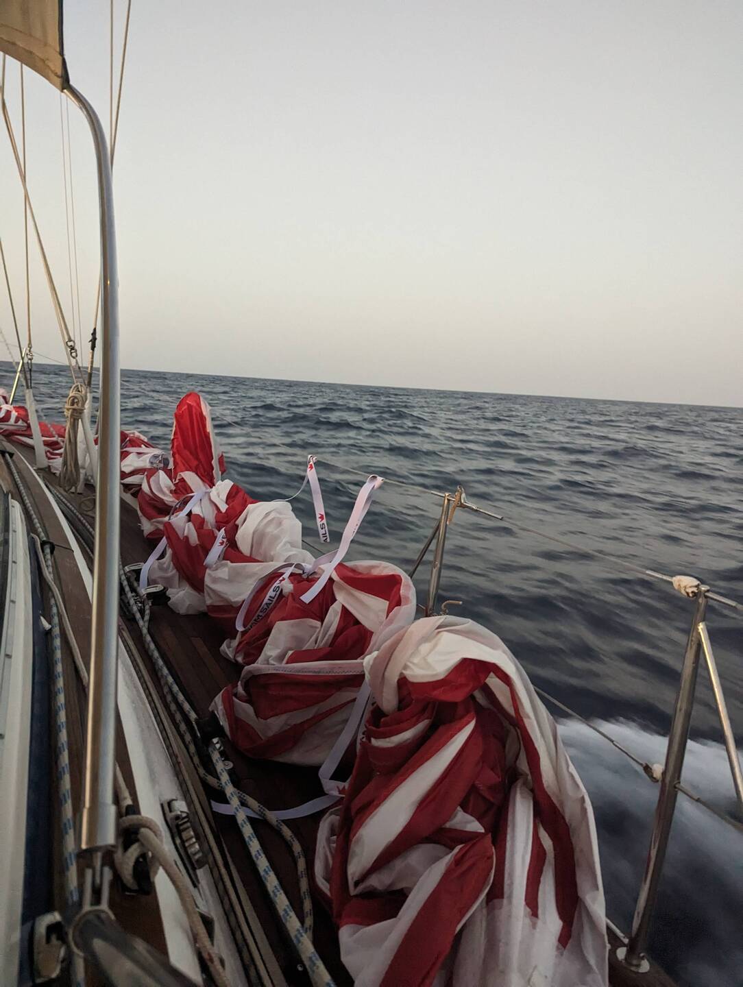 The Code 0 suddenly came down during the handover of the watches. The sail ended up in the water but we could salvage and get it back onboard immediately. With all hands on deck within seconds we gotRead more
