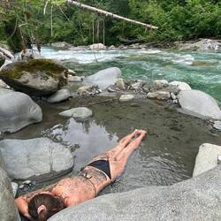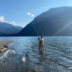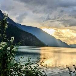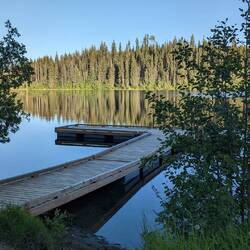 Weiter wollten wir zu einem Provincial Park fahren, auf dem Weg dorthin fanden wir einen tollen Schlafplatz mit einer kleinen Feuerstelle und einem Steg auf den See. Da es an Land zu mückig war,Baca lagi