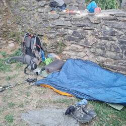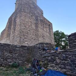 Nachmittags machte ich mich dann daran meine Unterkunft für Abends zu klären. Und nach nur drei Telefonaten mit drei verschiedenen Personen und einer Email wusste ich wo die Schlüssel für die Duschen auf der Grimburg versteckt waren und wann der Burgwahrt mich empfangen würde. Gegen 18:00 wurde ich dann zum Burgherren, konnte ausgiebig duschen und den Abend allein auf der Grimburg genießen. Das Wetter war sowohl für den Abend als auch für die Nacht als hervorragend angekündigt und so entschloss ich mich wieder fürs Cowboycamping. Bei dem genialen Sternenhimmel der aufzog, wusste ich es war die richtige Entscheidung.Read more