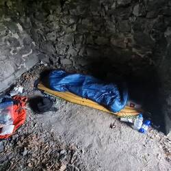 Ich kämpfte mich also hoch bis zur Ruine der Burg Mägdeberg und hoffte dort einen Schlagplatz zu finden. Ich verließ mich einfach auf mein Gefühl, dass da schon irgendwas sein würde. Und tatsächlich, nach einem anstrengenden Aufstieg mit Kletter- und Kriecheinlage (ich hatte ganz eindeutig den falschen und nicht unbedingt offiziellen Weg nach oben gewählt), fand ich ein Gebäude der Burg mit einem intakten Dach und vier Wänden vor. Ich hatte mit weniger gerechnet. Weiter oben auf der Burg genoss ich noch den Sonnenaufgang und verzog mich anschließend in mein Schlafgemach.Les mer