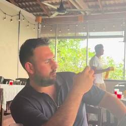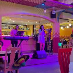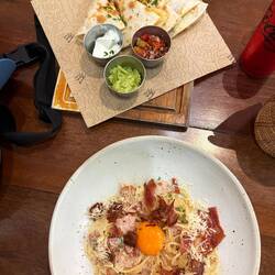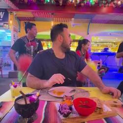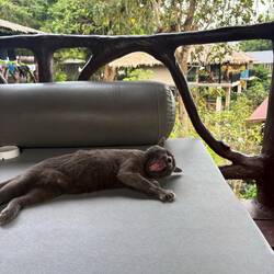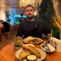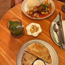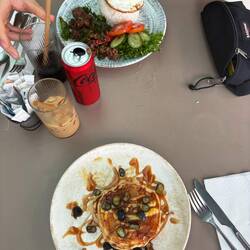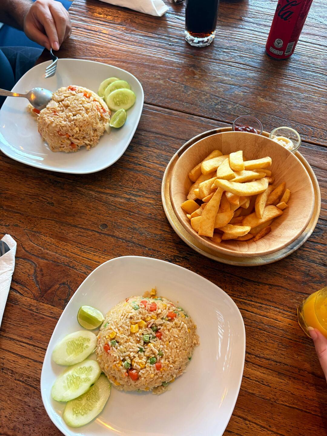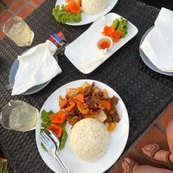 Nach der Tour hatten wir ziemlichen Hunger, zuerst wollten wir an den Strand, sind dann aber doch in die Stadt mit dem Longtail Taxi gefahren. Dort waren wir im Café „Mango Garden“ - Name istBaca lagi