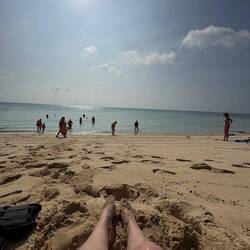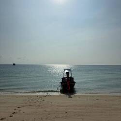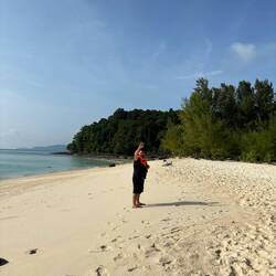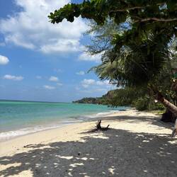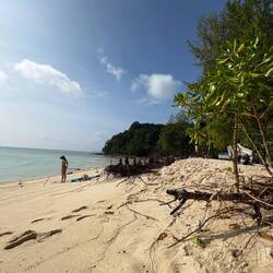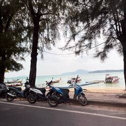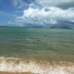 Nach einem Kaffee am Pool sind wir mit dem Roller Richtung Norden gefahren bis zum Koh Ma Beach. Dieser hat eine Landzunge die zu Ma Island führt. Leider hatten wir Pech mit dem Wetter, es hatBaca lagi