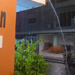 Wir haben heute leider Pech mit dem Wetter gehabt - es hat von morgens bis abends geregnet. Wir wollten eigentlich zu dem Restaurant gegenüber unserm Hotel essen, aber das hatte noch zu, also habenBaca lagi
