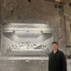 Spencers aunty has a friend who lives in krakow and today he took us to see the salt mine. We considered going ourselves but the tours were expensive so we were going to miss it. I'm so happy we didn't because it was awesome. The mine has been around since the 13th century and goes 150m deep. I was staggered by how far the tunnels went and how big some of the underground rooms were. Theres a full scale church that was built in the mine that is so big it's now used as an opera theatre and for other big events. The guy we came with said he once had a work conference in the mine that had 500 people attend. All the walls are pure salt, the tour guide said we could test it by licking, I tried and it tasted pretty good but quite dusty ahaha. The whole way through there were loads of sculptures and interactive exhibits, my favourite was a carving of some miners whose job it was to crawl around carrying long burning sticks so they could ignite trapped methane bubbles before the others came. I thought that it seemed like a pretty fun job lol.Read more