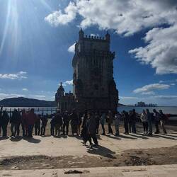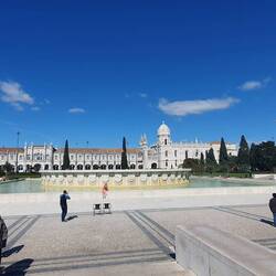 I still had a bunch of spots to visit that were a little too far away for me to get to yesterday so today I woke up nice and early, had some hostel croissants for breakfast, and then caught a bus to go check em out. The first place I went to was the palace fronteira, its a palace that a family still lives in but they let people come and have a look around. I only went to see the garden and it was fantastic! It was so lush and green and it also had a fantastic pond with a big tile gazebo behind it that was really cool. I was quite confused to see they had a black Swan in the pond and was thinking maybe someone had stolen it from Australia but then learned that apparently the government gives them away as diplomatic gifts to people, so there you go... It had clipped wings and nowhere to go otherwise I genuinely would've tried to set it free. After that, I took another bus to a suburb called belem because it has a nice foreshore with a few landmarks I wanted to check out. In belem I saw a castle with a guy out the front playing Taylor swift songs on his violin, a big stone monument that had a bunch of carvings of people working that reminded me a bit of the statue at the ministry of magic with the muggles, and a really big palace. It was just after noon and I was roaming around the belem foreshore when I saw a bus that had "sintra" written on the top as its destination. I was surprised by this because I'd assumed sintra was too far for me to visit on this trip but when I actually checked it was only an hour train away!! I quickly rushed to the train station and went to visit. The scenery on the way to sintra reminded me a bit of Carnarvon or Bali but not quite as tropical, there were pervasive looking vines and lush green bushes everywhere and lots of hills. There were a few things i wanted to see in sintra but I didn't have long and they all cost like 20 euros to enter so I prioritised a place called Quinta da regaleira. Quinta made the whole trip so worth it and is definitely one of the highlights of lisbon for me. Its an awesome Asian style palace surrounded by an amazing tropical park that features lakes, grottoes, wells, benches and fountains. The main attraction in the garden was the initiation well, its a dripping wet, moss covered spiral staircase that goes underground to a cave that you can walk through, it was so sick. My 2nd priority was the pena palace. I didn't realise this until I'd already gone too far to turn back but the pena palace is at the top of the biggest hill in the area so I ended up trekking it up 2kms of super steep stairs. Some evil person decided to put the entrance gate to pena 3/4s of the way up the hill, not at the bottom or at the actual palace entrance. I was planning on just checking out the palace from the front and not paying so i guess they put the gate there to get people to commit to the walk up and then be in way to deep to pull out by the time they have to pay. Long story short I did that huge walk for a pretty bad view of the palace and then just turned around went home ahaha. On the bright side I did get to see it and the walk up the hill had some great views, it would've been so awesome if I hadn't already walked like 10kms that day.
