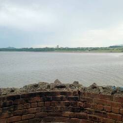 Wo vorhin noch die Wellen hoch gegen die Mauer schlugen, ist jetzt auf einmal ein Strand.