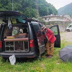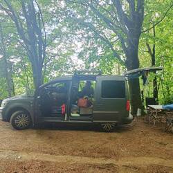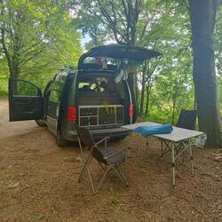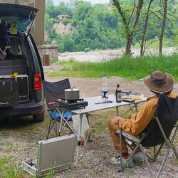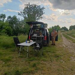 Unser Übernachtungsplatz war super - zum Frühstücken hat es uns dann auf einen sonnigen Parkplatz in der Nähe verschlagen. Kurt hat noch Gitarre gespielt und ich habe mir die Sonne auf den BauchRead more