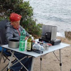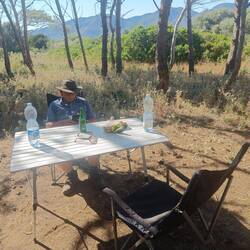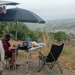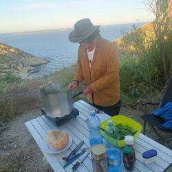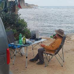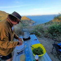 Unser Ūbernachtungsplatz war auf 380 m über dem Meer und lag im Schatten.also gab es nur einen Stoßstangenkaffee und später ein herrliches Frühstück an der Küstenstrasse von Alghero nach Bosa.Read more
