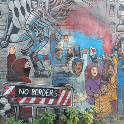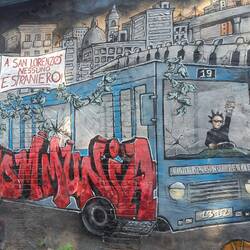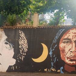 Heute haben wir direkt an einer Straße geschlafen - aber mit hübscher Wandbemalung.