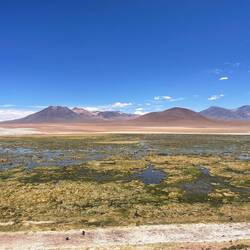 À partir de là on sait que la route est bonne et que ça ne fait que descendre, c’est donc mission réussie ! Mais il reste une nuit dans le froid avec le mal d’altitude, puis un réveil matinal pour voir les geysers au moment où ils sont le plus actifs. C’est très beau mais pas si exceptionnel, surtout pour les 15€ d’entrée ! La différence de prix avec ce qu’on a vu dans les autres pays est énorme. La descente jusqu’à San Pedro au milieu du désert avec des oasis de faune et de flore est quant à elle magnifique !