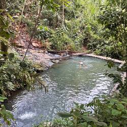 Dormimos 3 noches en casa de Johann's quien dirige el albergue de aguas termales Shintuya ¡vamos a disfrutar de una piscina natural de agua caliente! Y también caminamos por el bosque, bajamos por el río, los días están bien ocupados (pero aún así nos tomamos el tiempo de hacer una siesta todos los días).