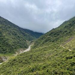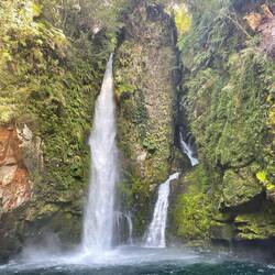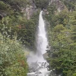 On en profite pour visiter les alentours : Valle de los Exploradores, avec une belle cascade et des glaciers au loin.