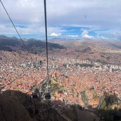 🇫🇷 On part de La Paz accompagnés de Matt et Konomi, deux voyageurs à vélo rencontrés à Cusco (même si on avait rencontré leurs vélos dans un hôtel plus tôt dans un village au Pérou). La sortie de la ville n'est pas simple, on prend des téléphériques pour éviter une montée qui nous aurait pris la journée. Au final, Matt se sentant mal, on ne fait qu’une petite journée avec eux, et on continue direction Uroru.