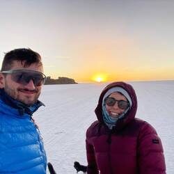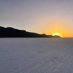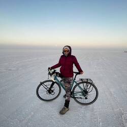 Bonne nouvelle, Konomi et Matt nous rejoignent pour le faire ensemble ! On passe deux jours à pédaler dans un paysage blanc, les paysages sont surréels et la lumière au coucher et lever du soleil incroyable. Un moment fort dans notre voyage.