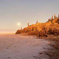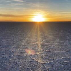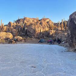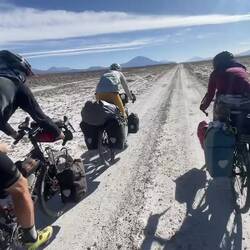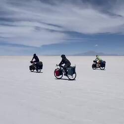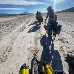 🇫🇷 Le fameux Salar d’Uyuni, un objectif pour tous les voyageurs à vélo qui passent par l'Amérique du Sud. Un désert de sel grand comme un tiers de la Belgique ! L’organisation n’est pas simple, il faut prévoir l’eau et la nourriture, bien réfléchir à où l’on veut aller sur le salar pour ne pas s’y perdre, il n’y a pas beaucoup de repères sur un désert de sel. Aussi on est au début de la saison des pluies et le salar peut être sous l’eau, les récits de ceux qui ont roulé sur le salar avec 20cm d’eau ne donnent pas envie.