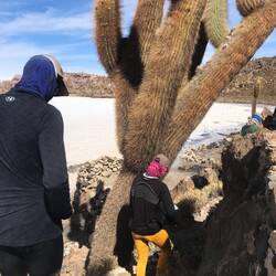 El señor que se encarga de las salinas desde varias generaciones nos hace una visita privada de las "Salinas" y nos da sal para hacer un stock para el resto del viaje!