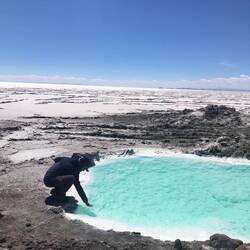 À partir de là on sait que la route est bonne et que ça ne fait que descendre, c’est donc mission réussie ! Mais il reste une nuit dans le froid avec le mal d’altitude, puis un réveil matinal pour voir les geysers au moment où ils sont le plus actifs. C’est très beau mais pas si exceptionnel, surtout pour les 15€ d’entrée ! La différence de prix avec ce qu’on a vu dans les autres pays est énorme. La descente jusqu’à San Pedro au milieu du désert avec des oasis de faune et de flore est quant à elle magnifique !