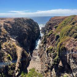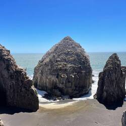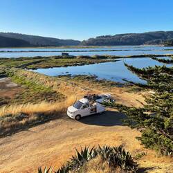 🇪🇸 Dirección la costa para disfrutar del mar durante el verano y antes de ir a la Patagonia. ¡El agua está helada y a Saskia le cuesta mucho meterse al agua! Los paisajes son muy bonitos.