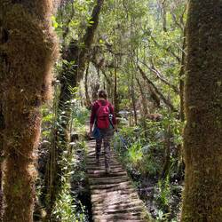 Hacemos una caminata de un día entero para ver un glaciar, la masa de hielo azul es impresionante. ¡Finalmente merecen la pena los 30 km! En un segundo parque, el glaciar es visible desde lejos.
