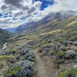 Seguimos un 3er día, decidiendo no tomar el desvío para ver el glaciar, avanzamos lentamente y preferimos asegurarnos de salir del parque al día siguiente. Comemos al borde de una laguna donde queremos nadar, pero cuando comemos y luego nos limpiamos, el clima cambia y llega la lluvia. Luego el granizo. ¿Avanzamos sin saber muy bien hacia dónde vamos, parando a dormir en el parque o continuando kilómetros cuesta abajo para llegar al siguiente pueblo? Al final la tormenta pasa sobre nosotros y decidimos parar para vivaquear por última vez en el parque. ¡Esta vez acampamos a 4850m! La noche será fría y poco relajante, pero al amanecer nos olvidamos de toda la Cordillera Blanca y Huayhuash que nos rodea.