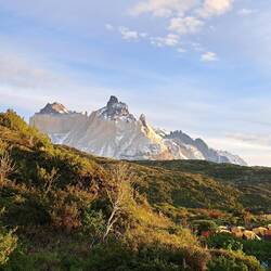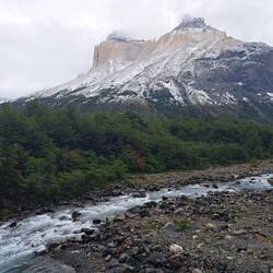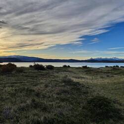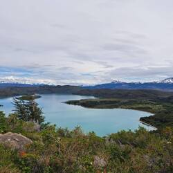 Die erste Nacht im Zelt war noch ungewohnt. Eine Weile hat es ein bisschen geregnet aber morgens war es einigermassen trocken. Über Nacht haben wir Haferflocken in Wasser und Milchpulver eingelegt, so dass wir morgens nur noch Nüsse, Zimt und Zucker dazugeben mussten und einen feinen Zmorga hatten. Nachdem das Zelt wieder abgebaut war und wir alles im Rucksack verstaut hatten, ging es bei bewölktem Wetter los Richtung Refugio Italiano. Der Rucksack war ziemlich schwer auf dem Rücken und wir waren froh, ihn nach 2 Stunden beim Refugio abzustellen. Von dort sind wir nur mit einem Tages-Rucksack zum Mirador (Aussichtspunkt) Frances und Britanico. Insgesamt dauerte der Hinweg ca. 2 Stunden obwohl es streckenmässig nicht weit war. Es ging jedoch ziemlich steil aufwärts. Vom Mirador Frances hatten wir einen atemberaubenden Ausblick auf einen Gletscher und runter zum Lago Pehoe. Beim Gletscher haben wir auch einige kleiner Abbrüche und Eislawinen gesehen. Die Berge waren ziemlich wolkenverhangen. Beim Mirador Britanico befindet man sich in einem Talkessel, welcher von einigen Bergen mit über 2000 Metern umgeben ist. Klingt nicht sehr hoch aber da der Trek oft auf 100 bis 500 m. ü. M. verlief, waren sie im Verhältnis doch ziemlich hoch. Zum Glück haben sich rechtzeitig die Wolken noch etwas verzogen, sodass wir die Umgebung bestaunen konnten, während wir unser Snickers verdrückt haben. (Snickers haben ein gutes Gewichts-/Kalorienverhältnis und dies ist das wichtigste Auswahlkriterium bei Wandernahrung.)