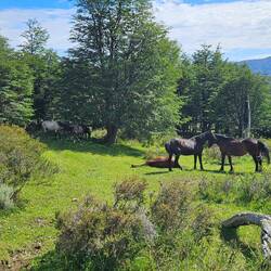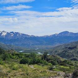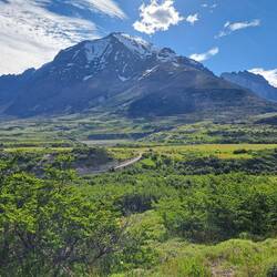 Heute sollte der erste Tag sein, bei dem wir vom "W"-Teil wegkommen und den "O"-Teil beschreiten sollten. Mittlerweile hat sich schon eine Morgenroutine eingestellt: Aufwachen, umziehen, Schlafsack und Matte zusammenräumen, alles aus dem Zelt rausbringen, Zelt abbauen, Rucksack packen, Frühstücken, Zähneputzen, Fertigpacken und dann losmarschieren. Da die meisten Leute den O-Trek beim Central starten, aber erst anreisen müssen, waren wir deutlich früher auf der Strecke als andere Wanderer. Zudem machen generell deutlich weniger Menschen den O- als den W-Trek. Das heisst wir sollten auf der kompletten Strecke heute keiner Menschenseele begegnen. Die Strecke heute führte zu Beginn immer wieder an Gebüsch vorbei oder durch Wälder hindurch. Später führte die Strecke parallel zum Rio Paine, einem Fluss mit wunderschönem, türkisfarbenem Wasser. Immer wieder mussten kleinere Bäche überquert werden. An einer Stelle sogar ein relativ grosser und tiefer Bach, wobei wir hierfür Schuhe und Socken auszogen und ans andere Ufer geworfen haben. Leider hat Sarahs linker Socken eine sehr unvorteilhafte Aerodynamik, eventuell war auch eine extrem lokal vorkommende, schlechte Thermik im Spiel. Jedenfalls landete besagter Socken nicht am anderen Ufer, sondern im Wasser. Barfuss wurde dieser aber schnell aus dem Wasser gerettet und durch einen trockenen ersetzt. Ein paar Kleidungsstücke wollten wir heute sowieso waschen. Im Verlauf des Tages sollte sich herausstellen, dass die ganze Aktion etwas unnötig war, da es weiter Flussaufwärts wohl eine Brücke gegeben hätte.