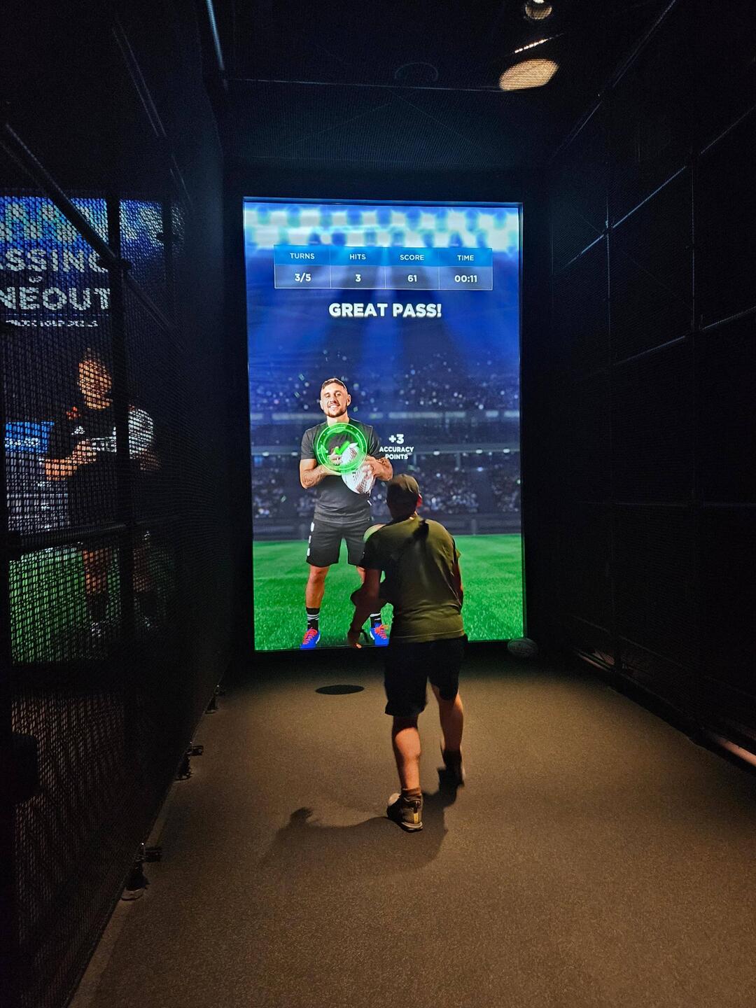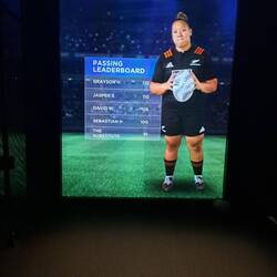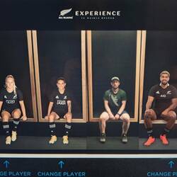 Dann machten wir uns auf den Weg zur "All Blacks Experience", wo wir um 12.00 Uhr eine Tour gebucht hatten. "All Blacks" ist der Name des ikonischen und sehr erfolgreichen neuseeländer Rugby Teams, vor allem auch bekannt für den "Haka" vor Spielbeginn. "Haka" bedeutet in der Sprache der Maori zunächst einfach "Tanz" und kann damit für alles mögliche eingesetzt werden. Beim Rugby wird dies als Kriegstanz aufgeführt, mit lautem Gebrüll und Klatschen auf verschiedene Körperpartien sowie extremen Gestiken und Mimiken. In der Tour wurde die Enstehung und Historie der All Blacks und der Black Ferns (das Frauen Team) erzählt, es wurden zwei Mannschaften in der Gruppe gebildet, welche in Quizfragen gegeneinander antraten und es gab einen Besuch in der Umkleidekabine. Zum Abschluss der Tour wurde der Haka in einem separaten Raum mit Grossleinwand vorgeführt, zunächst von den All Blacks, dann von den Black Ferns. Dieses audiovisuelle Schauspiel war wirklich beeindruckend und man kann sich vorstellen, dass der Haka die Spieler für das Spiel so richtig aufputscht. Nach der Tour hatten wir noch eine Weile Zeit, uns in diversen Disziplinen, wie z. B. Passen, Kicken oder Agilität, unter Beweis zu stellen. Auch wenn wir in unserer Gruppe überdurchschnittliche gut performt haben, wurde aber weder Sarah noch Sebi ein Rugby-Profivertrag angeboten.