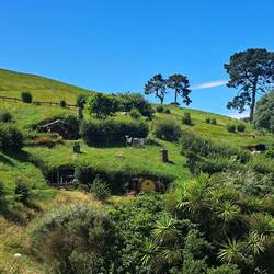 Heute morgen konnten wir noch einmal die Küche und den Umstand nutzen, dass wir quasi die einzigen Besucher auf dem Campingplatz waren. Daher haben wir zum Frühstück voll aufgefahren mit Rührei, Speck und Avocado. Da wir nun zwei Nächte am Stück am gleichen Ort waren, war es an der Zeit weiterzufahren. Wir taten dies zunächst in Richtung Hamilton, wo wir dem Taitua Arboretum einen Besuch abgestattet haben. Dieser Wald wurde Privat von John und Bunny Mortimer gepflanzt und besteht aus dutzenden verschiedenen Baumarten. Auf dem einstündigen Rundweg bestaunten wir diese. Dabei fing es in den letzten 20 Minuten zu regnen an, was uns aber mit unseren icotec Regenschirmen nichts ausmachte - bis es in den letzten 3 Minuten, bevor wir wieder beim Parkplatz waren, derart schüttete und stürmte, dass die Schirme nicht mehr viel halfen. Zum Glück waren wir dann aber schnell bei Schlukas und fuhren weiter zu einem Subway für den z'Mittag. Danach ging es noch einmal ca. eine Stunde Fahrt nach Matamata, von wo aus wir an der Hobbiton Movie Set Tours teilnahmen. Damit stellt dies den ersten Herr der Ringe Drehort-Besuch von uns dar. Es handelt sich dabei um den Drehort des Auenlands (bzw. speziell von Hobbingen). Zunächst ging es los mit dem Tourenbus, in dem auf der 15-minütigen Fahrt ein Video zum Grundstück und der "Entdeckung" als Drehort gezeigt wurde. Bei Hobbiton angekommen, startete dann die geführte Tour mit unserem Guide Callum, der dies sehr informativ und lustig gestaltete. Bei jeder der Hobbithöhlen und den Schauplätzen wurden einige Anekdoten erzählt. Zum Beispiel wurde erzählt, dass der ursprüngliche Drehort des Auenlands bei den "Der Herr der Ringe" Filmen, nicht darauf ausgelegt war, nach den Dreharbeiten bestehen zu bleiben. Erst bei den Dreharbeiten zu den "Der Hobbit" Filmen, beschloss man die Kulisse so zu gestalten, dass diese dauerhaft verwendet werden konnte. Nachdem viele der Hobbitwohnungen von aussen betrachtet werden konnten, ging es noch in eine Wohnung hinein. Alles war super schön hergerichtet und mit extremer Liebe zum Detail aufgebaut. Danach ging es noch über die Brücke zum "Grünen Drachen", der Schenke im Auenland, wo zum Abschluss der Tour noch ein Getränk offeriert wurde. Bei der Rückfahrt im Bus wurden dann nochmal einige Filmszenen aus den beiden Trilogien, bei welchen das Auenland und weitere ausgiebige Landschaftsszenen vorkamen, gezeigt. Diese Tour hat sich definitiv gelohnt und ist zurecht sehr gut bewertet.