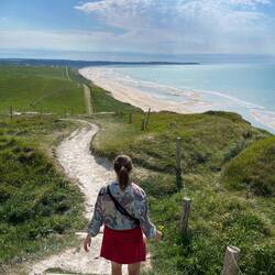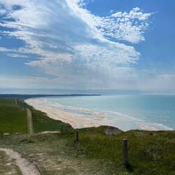 We took a car to drive to Wissant in france, just across the border to go see the white cliffs of the coast. We also tried to see the white cliffs of dover in England across the channel but only got aLeer más