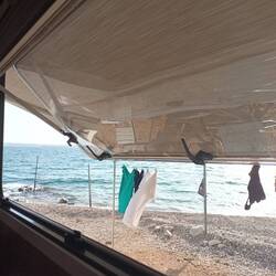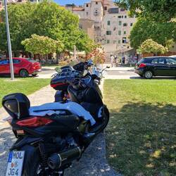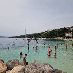 Wir sind um 10 Uhr mit dem Motorrad nach Bakar dort fühlten wir uns wie in den Slams . Sind dann weiter nach Rijeka bei 39° sehr warm . Dann ab nach Jadranovo zum Baden war sehr voll da heut hierMeer informatie