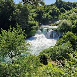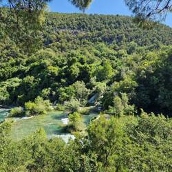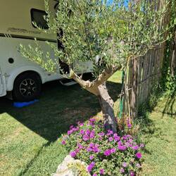 Wir sind heut Morgen 9.45 Uhr los und waren 11.45 Uhr Am Camp in Skradin. An der Einfahrt stand eine Frau und winkte uns in die schmale Einfahrt . Dachten erst es wäre der falsche Platz denn er sahMeer informatie