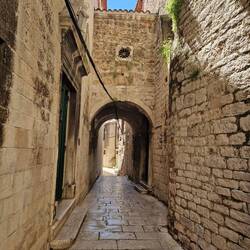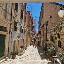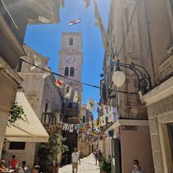 Heute sind wir mit dem Motorrad zur Stadt Sibenik gefahren . Wir waren beeindruckt über die unzähligen Gassen . Dort war es schön kühl. Die gesamte Stadt ist wie ein riesiges Labyrinth überallMeer informatie